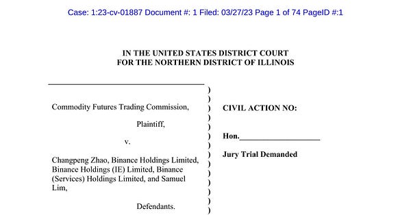Binance & CZ have been sued by the CFTC over trading access to US customers. The complaint also confirms CFTC’s position that BTC, ETH and LTC are commodities and not securities.